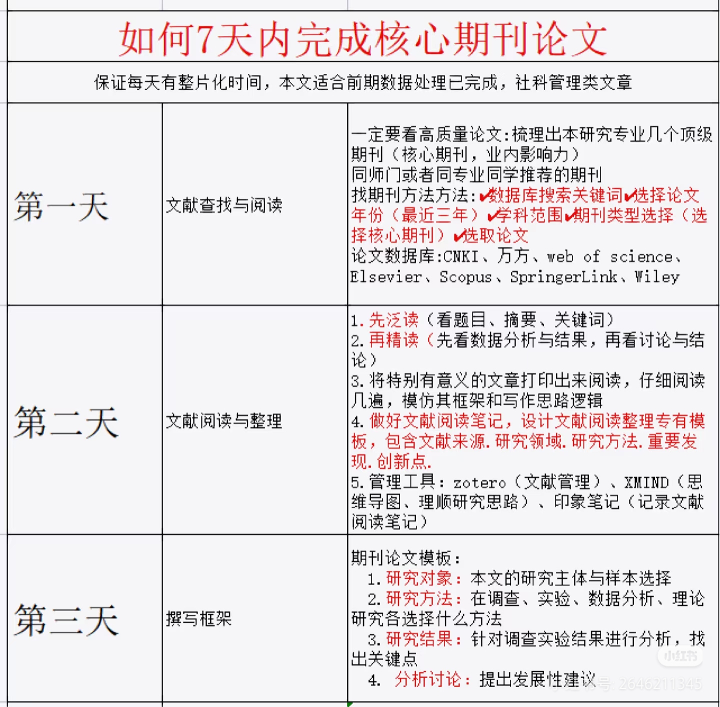 - 第7天:检查格式、查重、修改