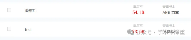 通过以上指令,基本可以实现对原文的有效降重和结构优化。可以看到重复率从原来的73%降到54%,降低了将近20%。