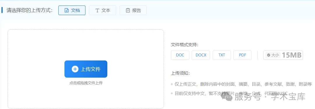 可以直接上传文档,也可以只降需要降的部分直接粘贴,也可以上传报告降AIGC率。